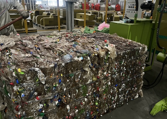- PET bottles baling with a baler