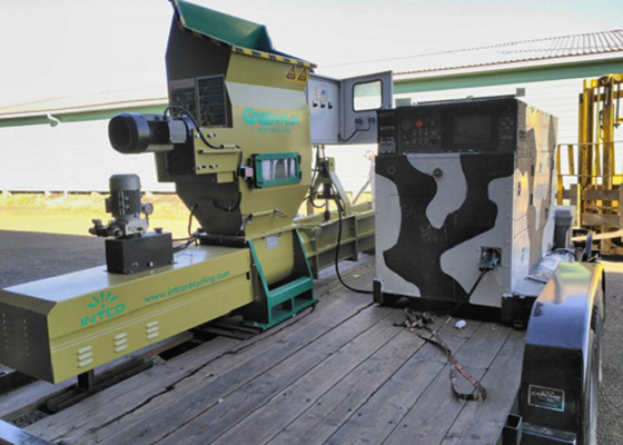 GREENMAX polystyrene compactor, manufactured by INTCO Recycling, is a very professional polystyrene recycling machine. The machine first shreds polystyrene waste then pushes the pieces with a screw and compresses them into blocks. This process can achieve compression ratios of up to 50:1, making storage and transportation easier.