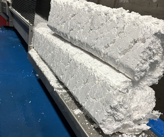 The EPS recycling machine uses cold-compression screw technology, applying strong mechanical pressure to shape the foam without damaging its physical properties. The resulting foam blocks are close to virgin material in quality.