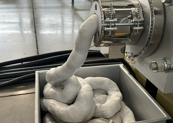 The EPE recycling process is mainly completed in the standard densifier. This machine combines crushing and compacting in one unit, allowing EPE foam to be fed directly into the system, where it is automatically shredded, melted, and extruded into solid blocks—compressed down to 1/90 of its original volume.