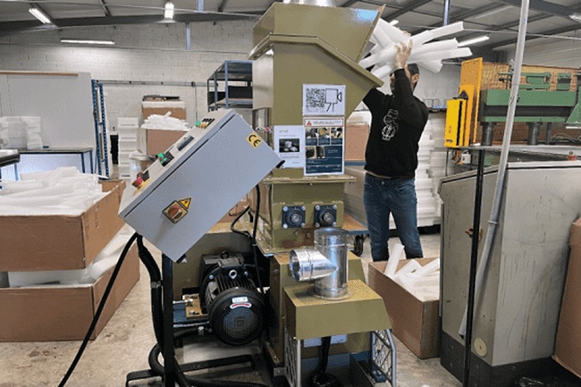 1. Collect PE foam offcuts centrally from production lines or warehouses